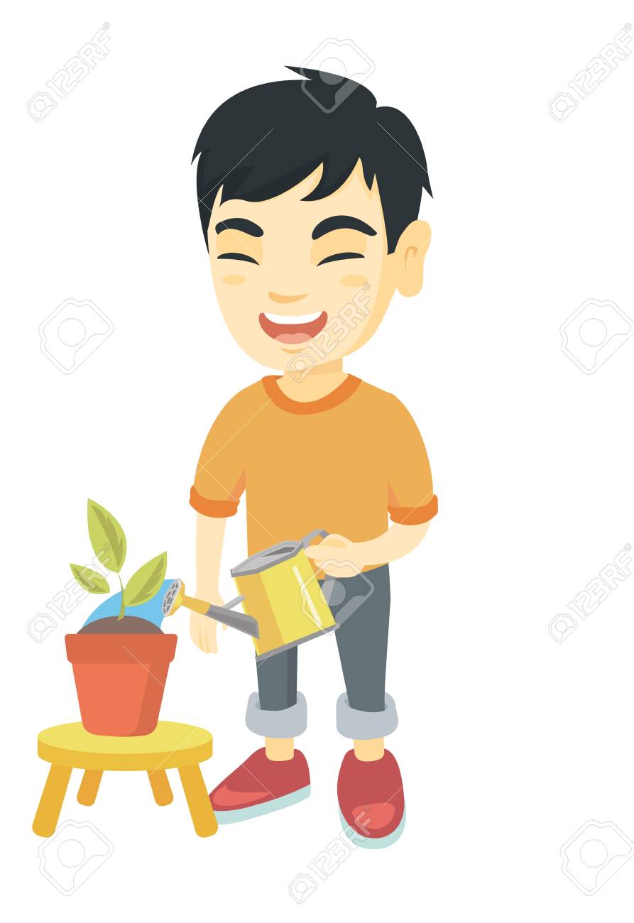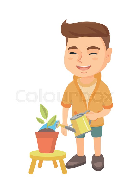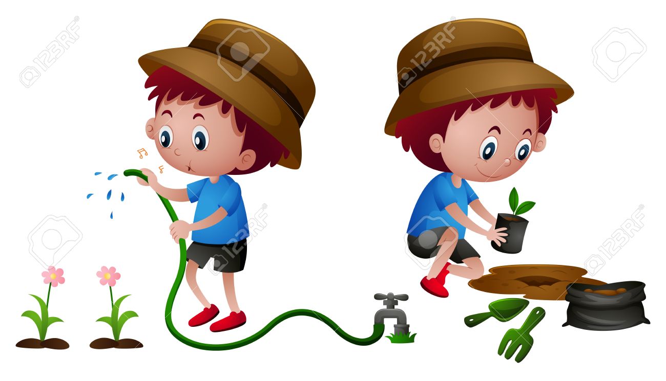 Cartoon Boy Watering Plant